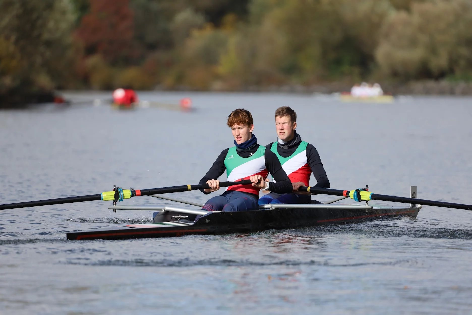 Für unsere Junioren Johannes Muylkens und Johannes Hess war es die erste Teilnahme an der Bocksbeutel-Regatta. Im Zweier ohne direkte Konkurrenz lieferten sie ein starkes Rennen ab und wurden mit einem Anstecker geehrt – der "Bocksbeutel" als Preis wie bei den erwachsenen Ruderinnen und Ruderern bleibt bis zur Volljährigkeit tabu.